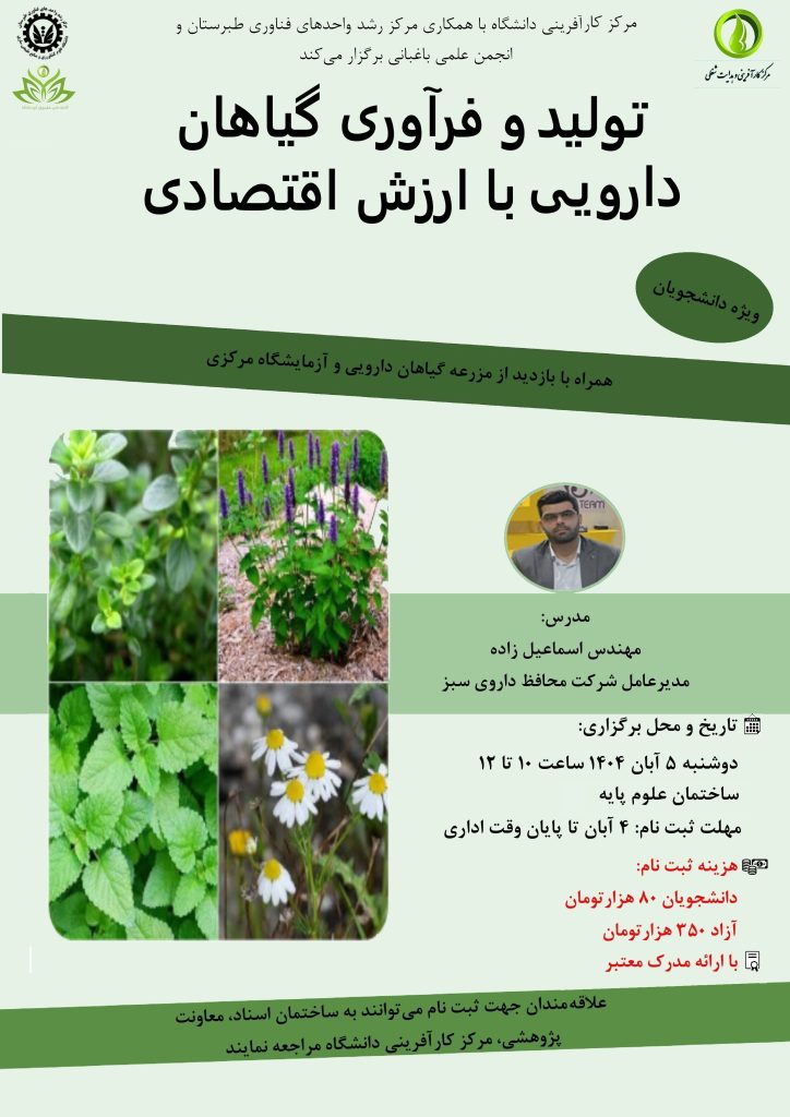 مرکز کارآفرینی دانشگاه با همکاری مرکز رشد واحدهای فناوری طبرستان و انجمن علمی باغبانی برگزار میکند